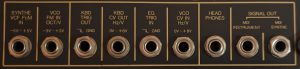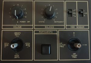 Das VCO-Signal gelangt auf jeweils angepasste Filter und Hüllkurven für jedes einzelne „Instrument“. In vier Schaltungen kann die Filter-Frequenz (fC) individuell geregelt werden (Korg35-Filtermodule), in den anderen Fällen die Klangfarbe oder Teile der VCA-Hüllkurve. Es gilt hier wahrzunehmen, dass die Instrumenten-Auswahl additiv ist. Jede Kombination ist möglich.